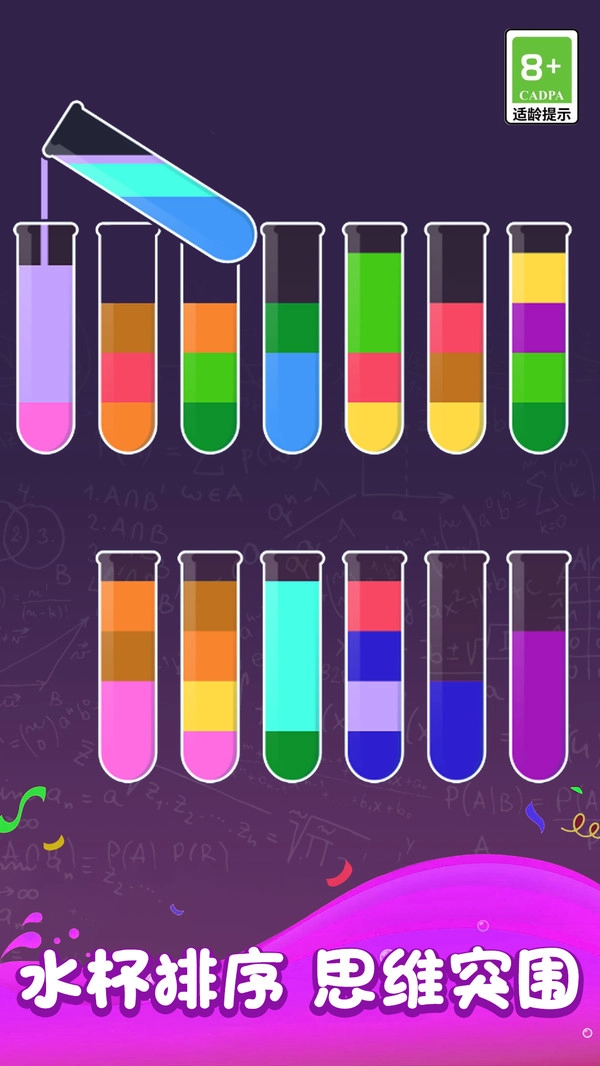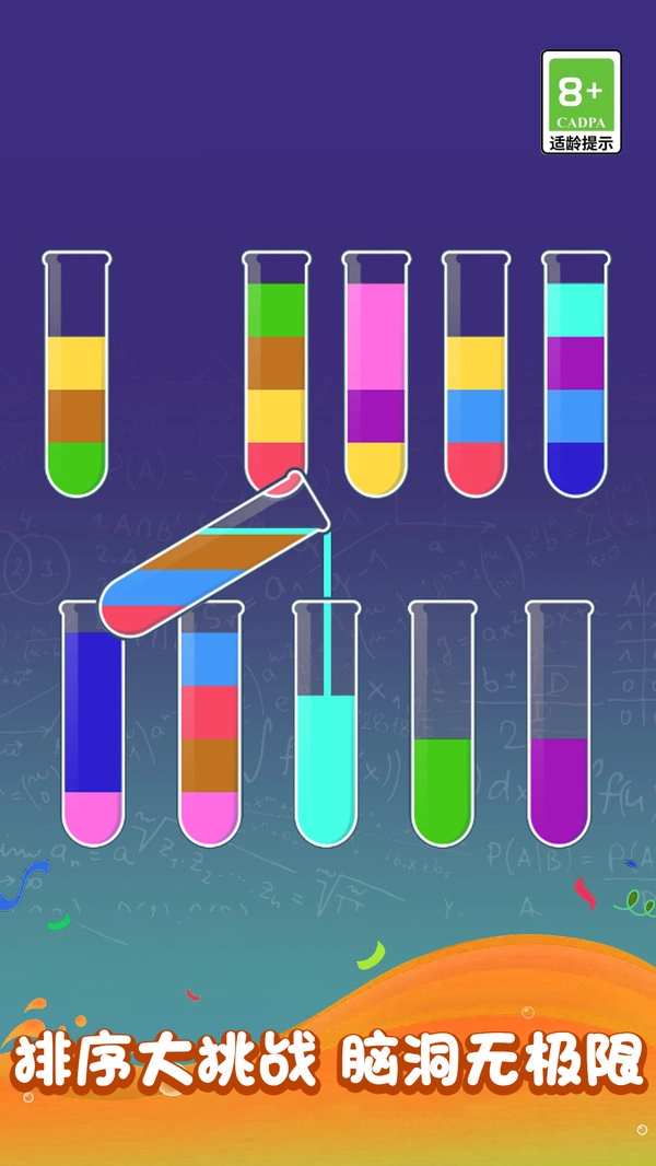 1、菜到极致》巧妙融合了色彩液体排序与益智解谜元素,玩家需要运用清晰的逻辑思维,把相同颜色的液体精准地进行分类。