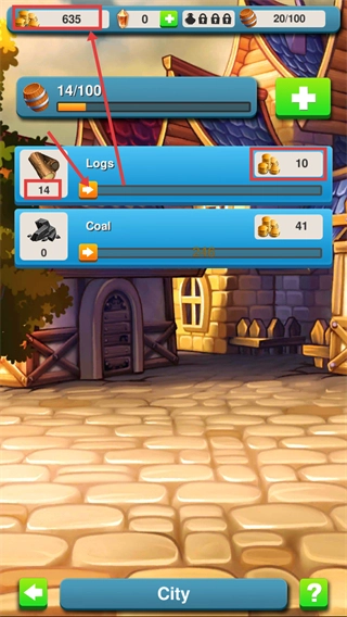 4、在城市界面进行资源交易,比如把【14】个木材卖掉能得到【10】金币,借助资源交易来积累金币,从而提升发展能力。
