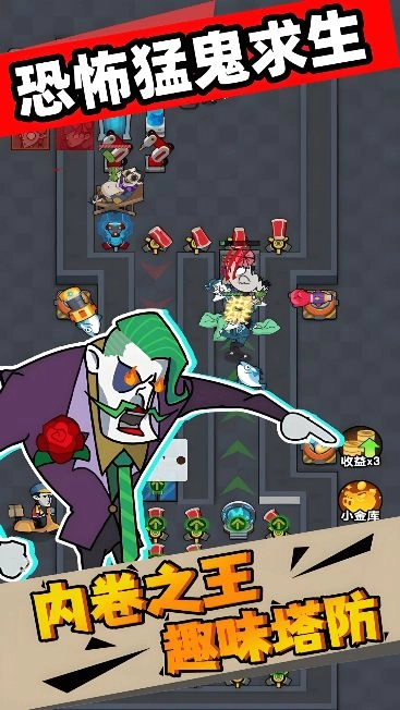 1、在这个满是惊悚元素的办公室世界里,你得靠建造防御建筑来抵挡各种攻击。 2、通过躺平的方式获取金币,这些金币可以用来建造或者升级防御建筑,合理分配资源很重要。