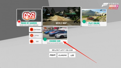 1、打开《极限竞速:地平线4》手机版游戏,点击界面上的【CHANGECAR】按钮。