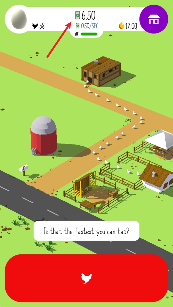 进入游戏后,按照提示点击下方的红色按钮,就能持续获得小鸡,这些小鸡会进入鸡笼中。