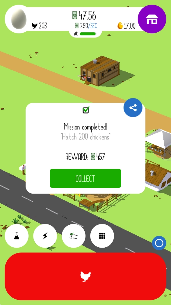 2、积攒充足的财富用于升级鸡舍,同时建造更多鸡舍,这样在容纳更多小鸡后,就能显著提高收益。