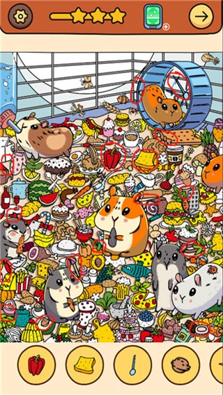 游戏里的关卡画面设计得相当复杂,各种元素交织在一起让人目不暇接,玩家需要全神贯注地去搜寻目标。