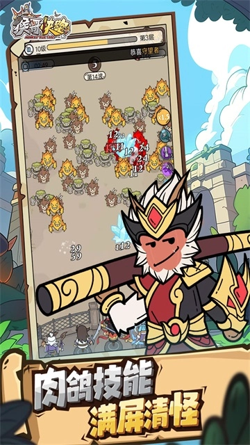 《猴哥快跑》是一款放置类塔防割草游戏,玩家需收集并培养各类英雄以增强其战力,在关卡中搭建防线抵御汹涌来袭的敌人,通过获取能量持续升级英雄技能,还能选择更多英雄并肩作战。游戏包含章节挑战、PVP排位、混战竞技等丰富玩法,让玩家在成长过程中时刻保持新鲜感。除了打怪推进关卡外,游戏还设有装备系统、符石系统、神兵培养等多元养成体系,为玩家带来更具深度的升级体验。