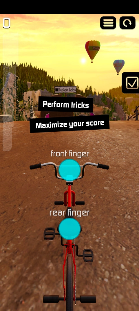 5、稍作等待加载完成后就能进入游戏,游戏采用双指操控的方式,玩家需要操控单车来完成特技表演。