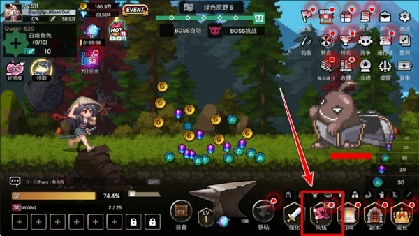 1、游戏里等级高的角色没办法加入由低等级角色当队长的队伍,因此得先把队长位置交给等级更高的角色,第一步是进入队伍界面。