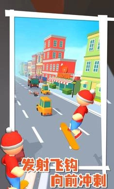 这是一款玩起来超有意思的跑酷小游戏!游戏里你会脚踩滑板,手里还握着钩子,得靠勾住前方汽车的办法往前冲。要不断换车才能躲开路上各种障碍物,玩起来真的特别带劲。而且游戏操作简单,很容易就能上手。