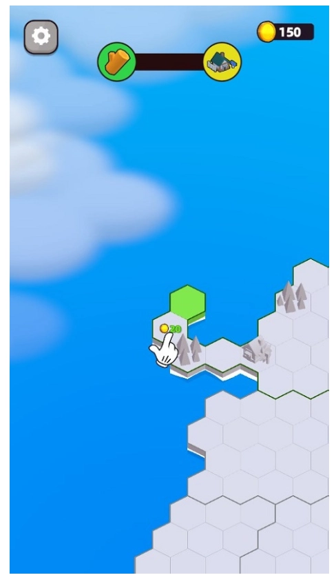 解锁建筑后,树木和矿产能够生产对应的资源,消耗金币还可以进行快速挑战。