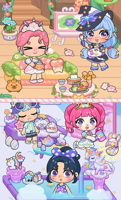 这里的衣服堆积如山!每天都能为公主换上风格各异的装扮:蓬松的公主裙、帅气的牛仔装、华丽的宫廷袍……八百多个搭配零件任你挑选,从精致包包、个性鞋子到闪亮项链、可爱发饰,尽情释放你的创意灵感!要是觉得还不够过瘾,还能亲手设计专属服饰——给裙摆画上彩虹,在衣身点缀小花,穿上身的瞬间,独一无二的限定款就诞生啦!