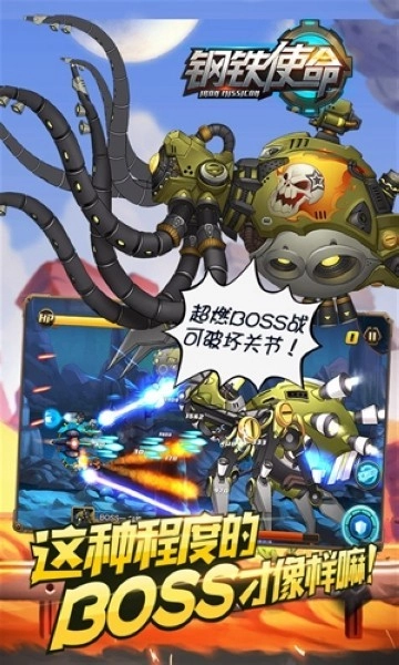 钢铁使命是一款画面酷炫的横版飞行射击游戏。它采用横版2D画面设计,游戏背景场景丰富多样,既有寂静深邃的太空,也有广袤无垠的戈壁,还有阴森幽暗的洞穴,整体给人一种开阔宏大的视觉感受。