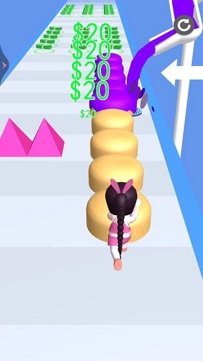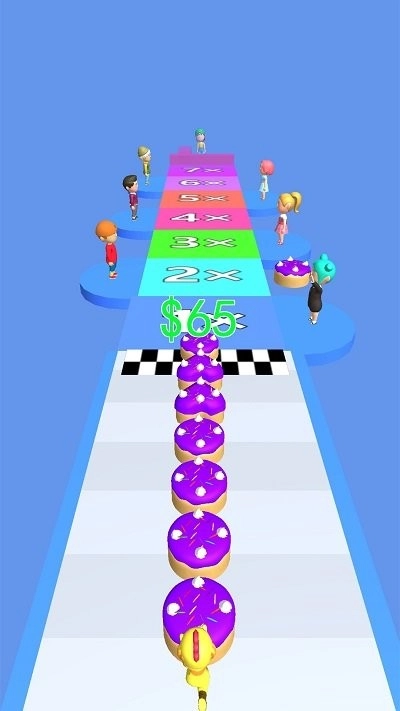 1、通过点击与滑动屏幕,操控角色在蛋糕工厂的赛道上开展极速跑酷,达成蛋糕制作的任务
