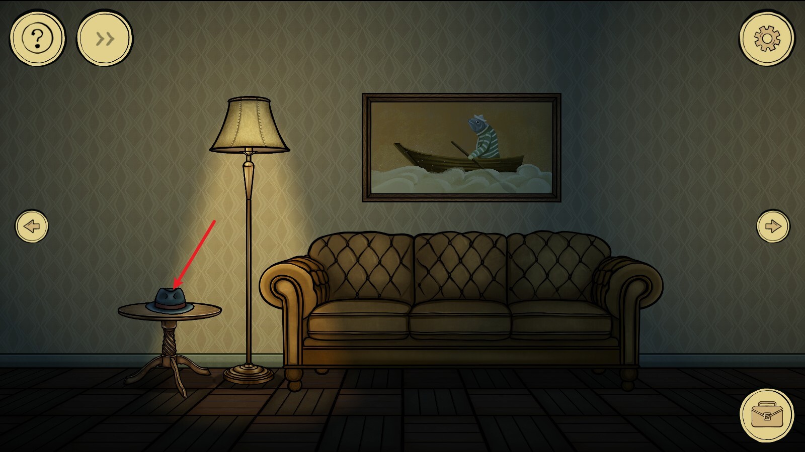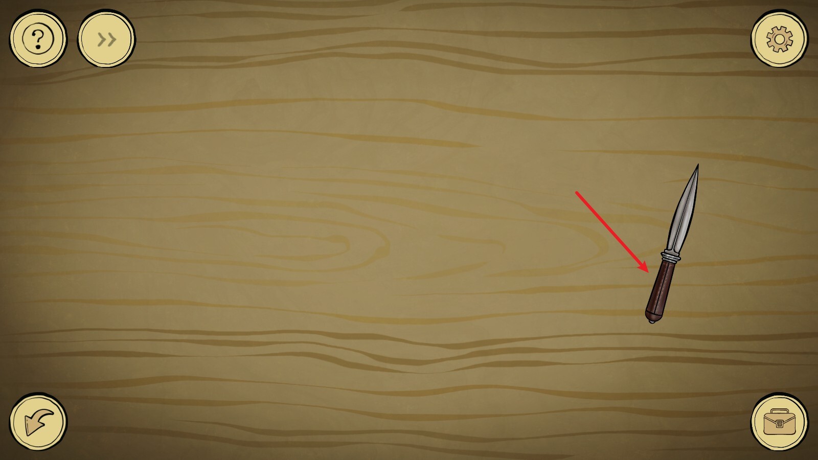 3、随后我们进入最左边的场景,点击桌子,就能在这里找到一把小刀。