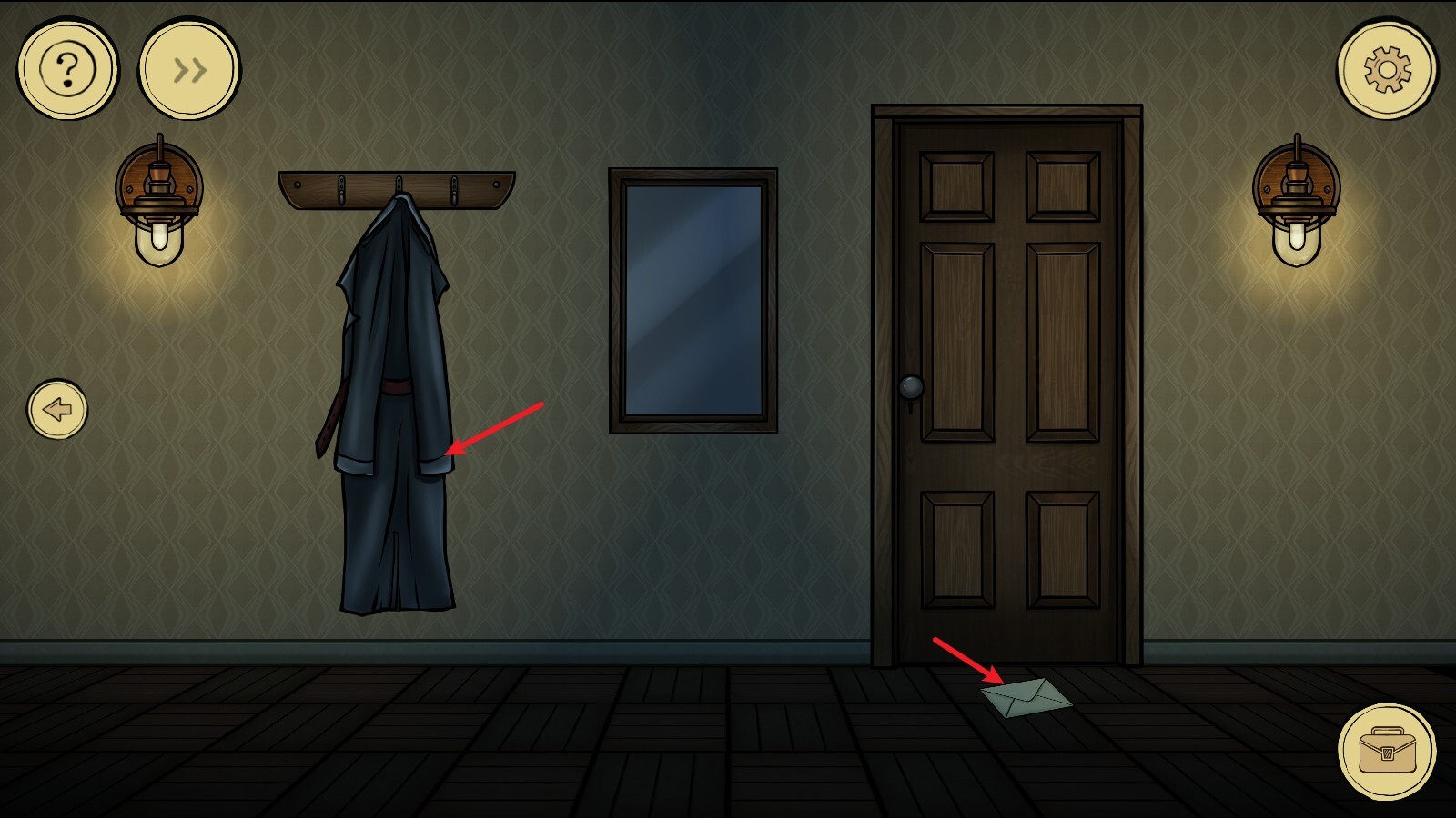 2、接着向右移动场景,点击衣服和递上的信件。