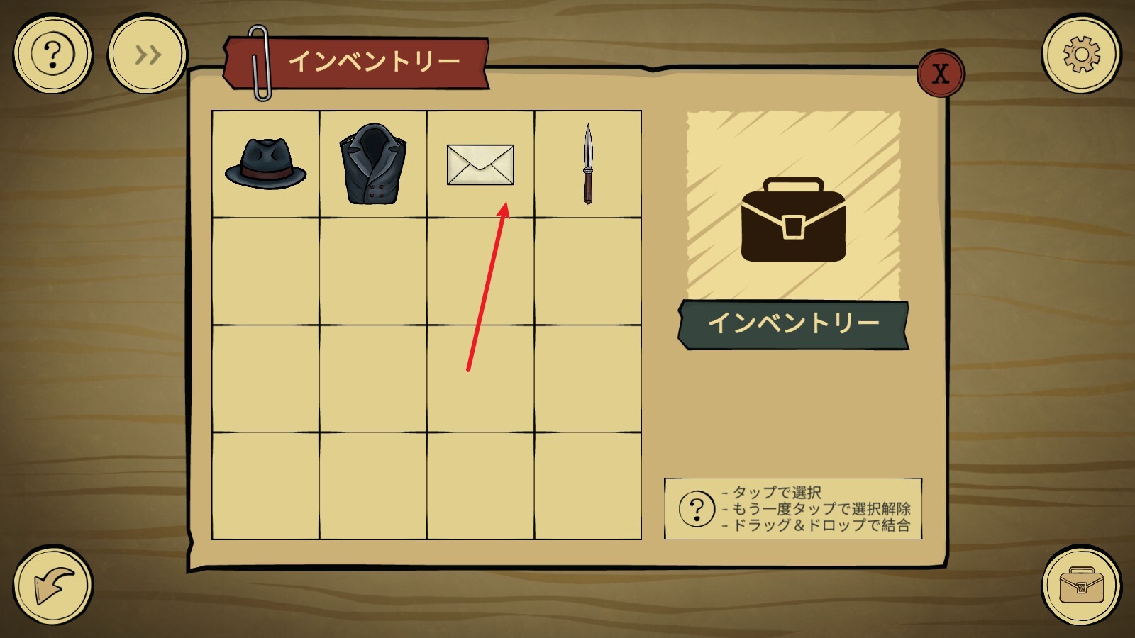 4、然后点开背包,点击信件,将其放到桌面上。