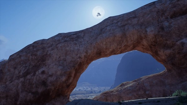 在《极限国度》的游戏世界里,拱门地貌随处可见。其中,高空拱门(Skyline Arch)是地图上又一处带有现实印记的地貌——现实中1940年时,这片拱门的一部分发生坍塌,意外让洞口尺寸扩大了一倍。不过好在,当我在游戏里复刻《E.T.》那幕经典场景时,这个拱门稳稳当当,没出任何状况。