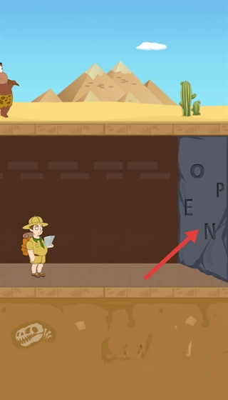1、寻宝探险中,先观察带有字母的石门,准备解锁。
