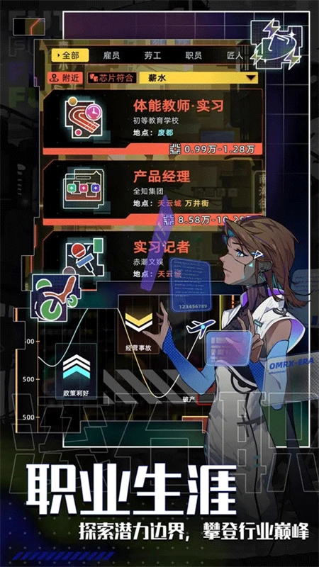 《未来人生》巧妙融合角色养成与模拟经营等多元玩法,玩家得以在充满科幻感的赛博朋克世界里,自主规划前行方向——是成为万众瞩目的传奇,抑或做隐匿于人群的平凡个体?所有抉择尽在你手。这款游戏尤其适合热衷于赛博朋克风格的角色扮演爱好者体验。