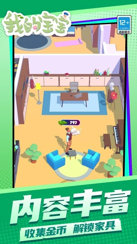 玩家在游戏里需要操控孩子的父母,把襁褓中的婴儿相互交换,以此为婴儿打造更优质的成长环境,同时还要为孩子未来的生活积极收集钞票。优质的成长环境能够提高孩子在游戏中的等级,让他们在未来获得更理想的工作和职位,进而获取较高的收益。而丰厚的收益可以帮助成年后的孩子购置必需的家具,装饰出温馨的居家环境。