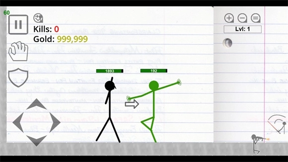4、正式开始后,左侧负责控制角色移动,手指在屏幕上滑动即可操控火柴人的双手发起攻击。