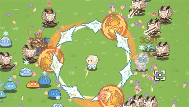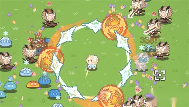 当海量怪物袭来时,灵活地移动躲避,让角色自动攻击,搭配技能组合能快速清理屏幕上的敌人,升级后范围伤害的效果会更加震撼。