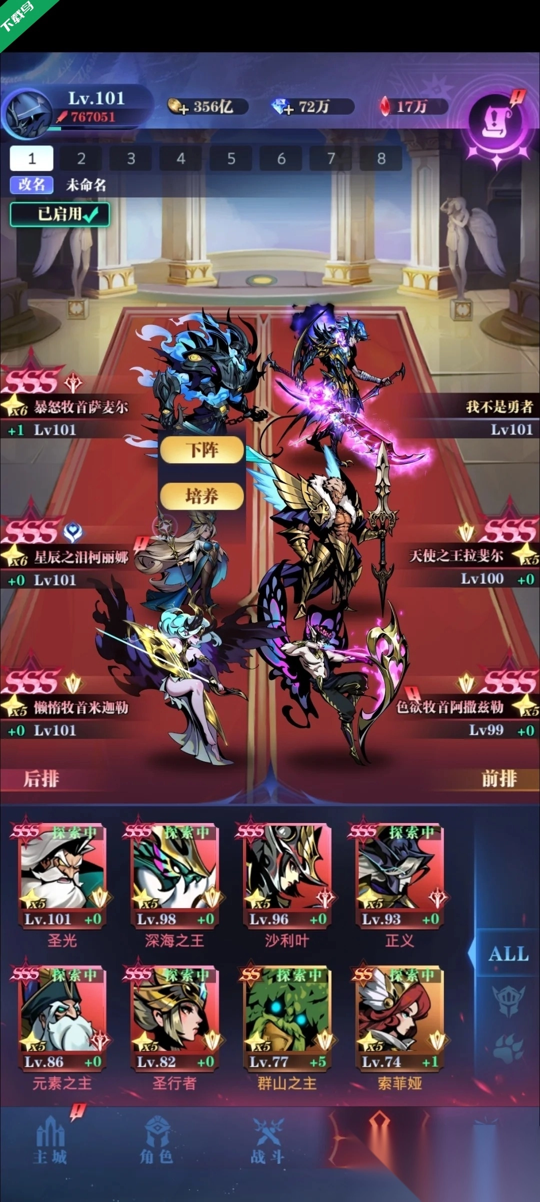 我们可以招募各种各样的英雄,然后通过升级、让他们进阶以及提升星级来不断地培养他们。当激活羁绊系统的时候,队伍的整体实力能够得到明显的提升。