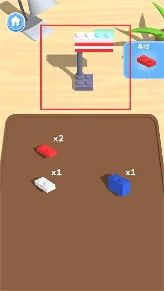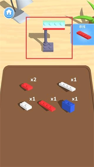 1、按右侧【寻找】提示的红色积木,将其拼接至现有结构的对应位置,完善积木模型的部分细节。