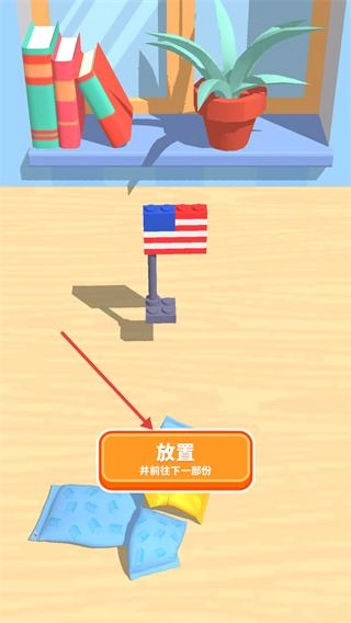 4、完成积木模型搭建后,点击【放置】按钮,将成品布置到场景中并推进至下一部分。