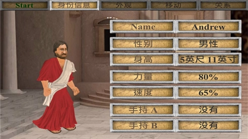 3、你也可以对你的性别、身高、力量、速度,还有手持物进行更改;