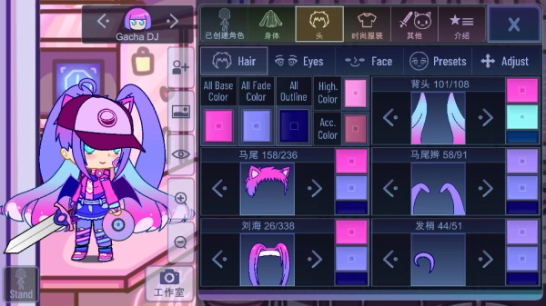 自定义各种的角色,玩家们可以调整各种的颜色和搭配各种的姿势,游戏的场景编辑器支持添加宠物,还有多种的场景存档助力创作故事,游戏玩法自由没有局限,高清画风搭配轻快的BGM。