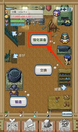 在游戏界面选择铁匠铺进行装备强化。