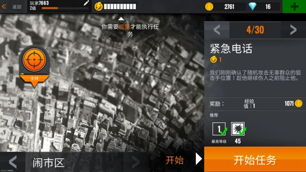 游戏里玩家完成各类任务就能获得经验,但游戏等级的实际作用不太突出,枪械和关卡似乎都不需要等级解锁,它最主要的用处大概就是升级时会回满体力,还能给玩家奖励一颗钻石。