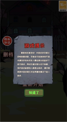 隐秘房间包含部分恐怖刺激的场景,可能会导致身体不适,未满18岁的未成年人必须在家长的监护下体验游戏,请认真阅读本游戏提示并在同意后进入游戏。