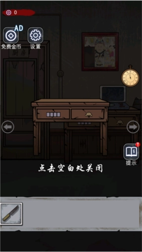 可点击此处获取线索“一把残破的斧头”;查看线索后进入古宅,获取到一片残缺的图画,还在柜子中寻找到一柄小刀。