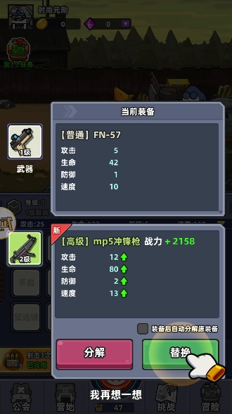 当拥有更高级的装备时,可以选择替换旧装备。