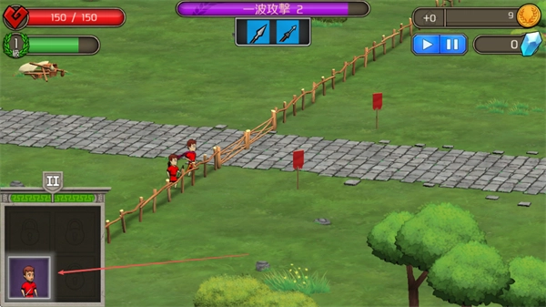 点击左侧的士兵单位,把它们部署到石板路的防御点位上,以此阻拦敌方的进攻。