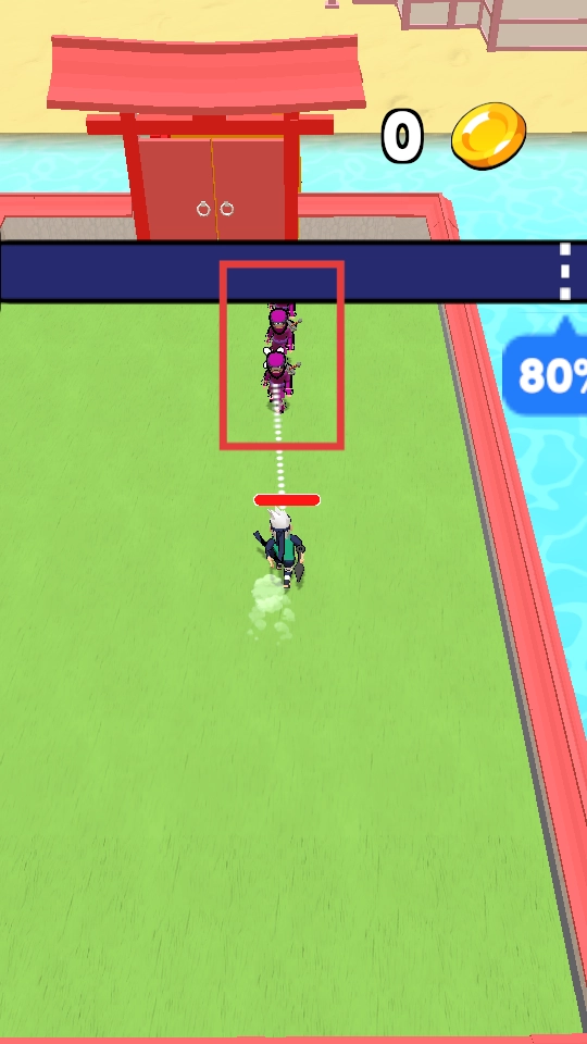 在移动途中,碰到敌人的时候,操控忍者展开攻击,把紫色忍者这类敌人都消灭掉。