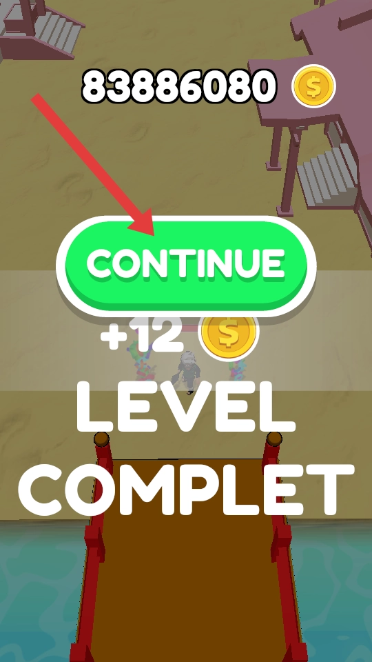 成功通过关卡后,点击【CONTINUE】按钮即可领取金币奖励,随后进入下一关继续挑战。