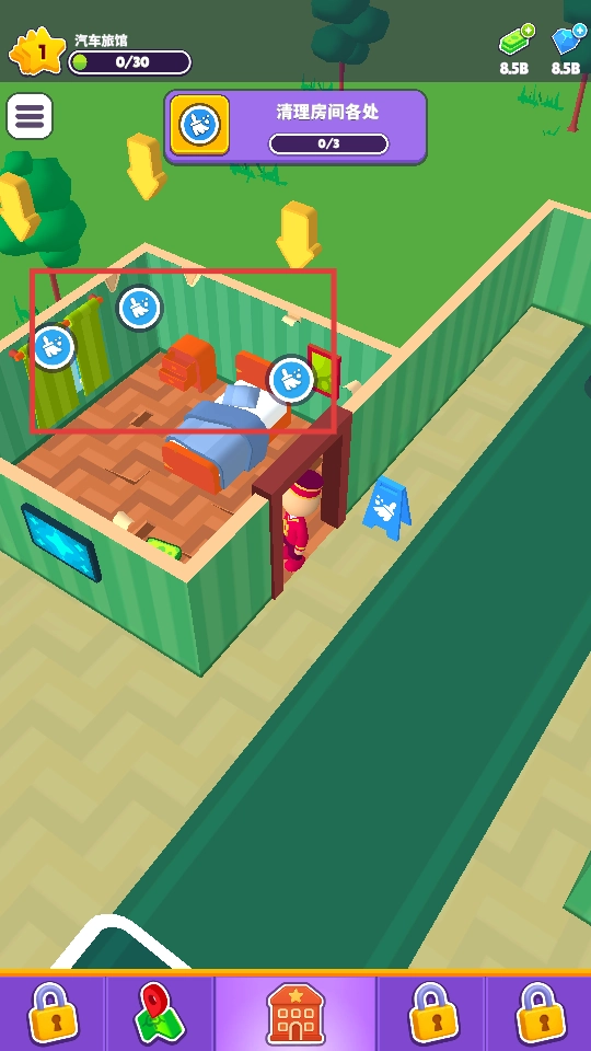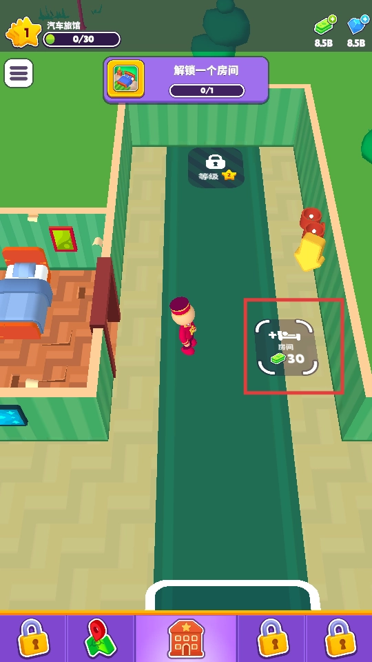 消耗30点资源解锁新房间,以此拓展旅馆的空间布局,提升其容纳和接待宾客的能力。