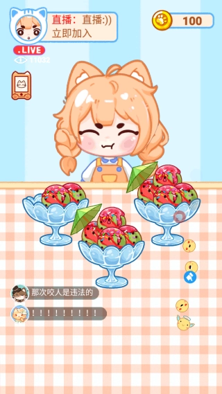 接下来要开启吃播挑战啦,点击冰淇淋投喂给主播,把所有冰淇淋都吃完就能通关,解锁更多关卡任务,参与更多美食制作和吃播挑战吧!