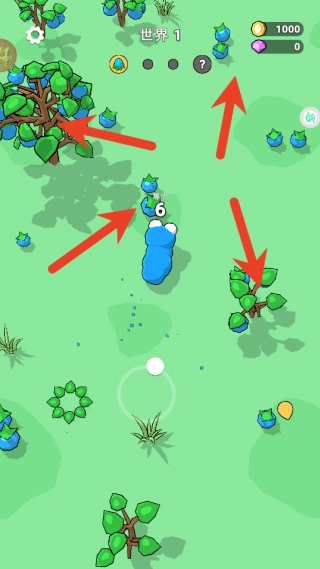 用手指在屏幕上滑动,就能操控你的生物移动;主动去靠近并吞噬那些散落在场地里的能量光点,还有所有体积比你小的生物,这样就能让你的生物获得成长啦。