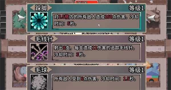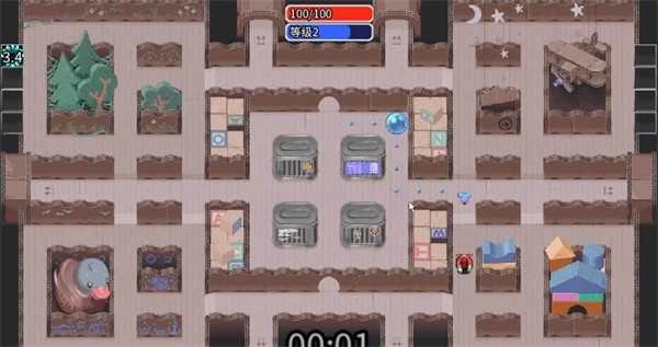 游戏正式开始后,玩家能够挑选一个初始技能,在地图中收集经验小球提升等级,从而解锁新的技能。