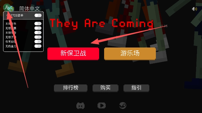 僵尸射击与防御的菜单,可通过点击游戏标题菜单界面左上方的绿色钥匙来开启,选择新保卫战即可开始闯关。