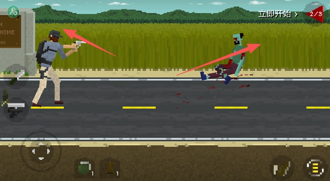 移动角色并点击画面内的僵尸方向射击,将其击杀。