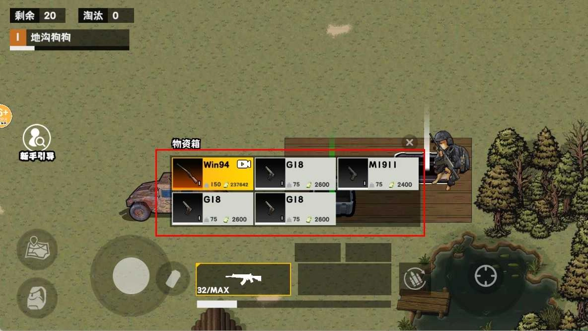 物资箱里有Win94、G18、M1911这些武器,大家可以根据自己的需求挑选,多拿几把枪能为后续改装或者更换使用提前做好准备。