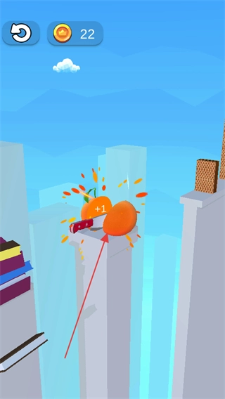 当刀具在空中飞行时,若碰到橙子之类的物品,只要精准地将它们切开,就能获取分数,进而得到更多的金币。