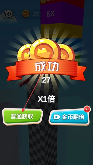 成功通关后会弹出结算界面,你可以选择普通获取方式来领取本次获得的金币。