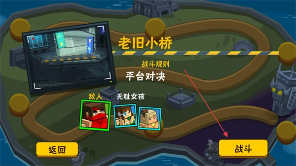 挑选像老旧小桥这类关卡,点击战斗按钮就能进入战斗场景,该战斗采用平台对决的规则。
