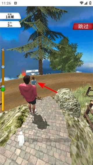 跟着箭头的指引,朝着前方其他角色的方向跑过去,保持好跑步的节奏,尽量在比赛过程中超过对手,让自己的成绩变得更好。
