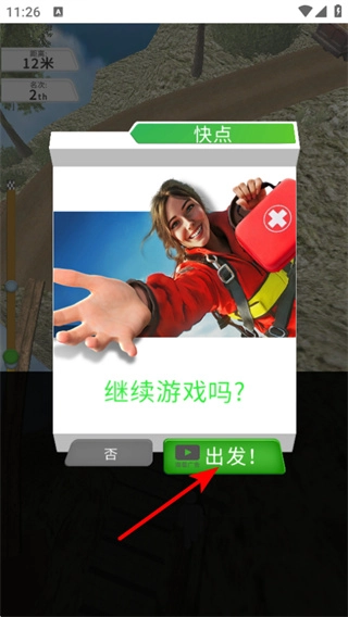 当弹出“继续游戏吗”的提示框时,点击“出发”按钮即可继续游戏进程,这是继续冒险的关键操作,只有点击该按钮才能回到赛程。
