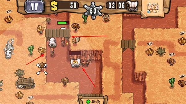 《枪之荣耀》中文版是一款以反派视角展开的塔防类休闲益智游戏,采用2D美术风格勾勒西部风情——黄沙漫卷的荒野、零星伫立的仙人掌、呼啸疾驰的火车等元素,让玩家仿佛置身西部世界;视角支持自由缩放,无论远近都能呈现清晰流畅的画面效果。独特的角色塑造与防御机制相互融合,不仅营造出醇厚的西部冒险氛围,更能让玩家沉浸式体验身为西部大盗的别样人生,以及策略防御带来的烧脑乐趣。